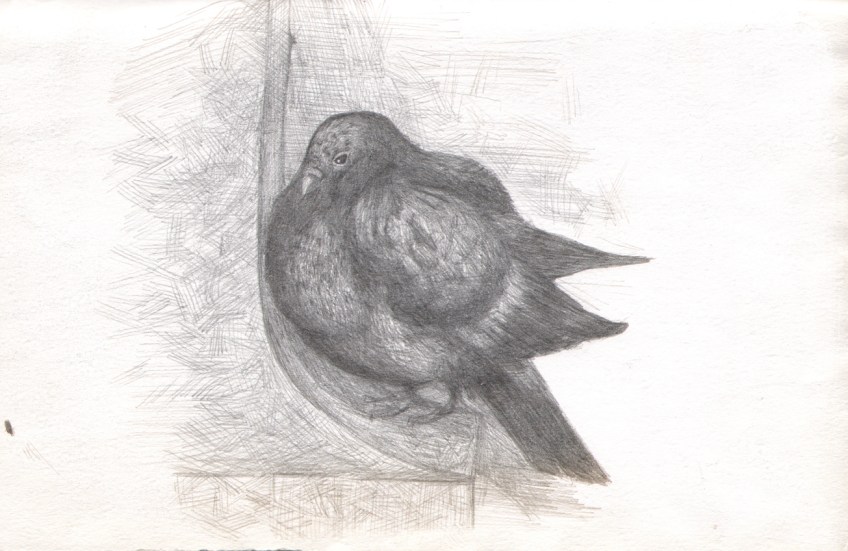 PigeonDrawing3Silverpoint Published 02/26/2012 at 1305 × 848 in More Pigeons Silverpoint on paper. 2006. Approx 5″x9″