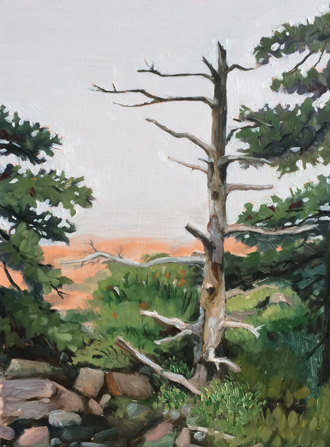 Acadia Sketch 04 2015 Published 08/24/2015 at 648 × 877 in Painting in the wilds of Maine Tree/Fog 2 : Oil on board. 9″x12″ 2015