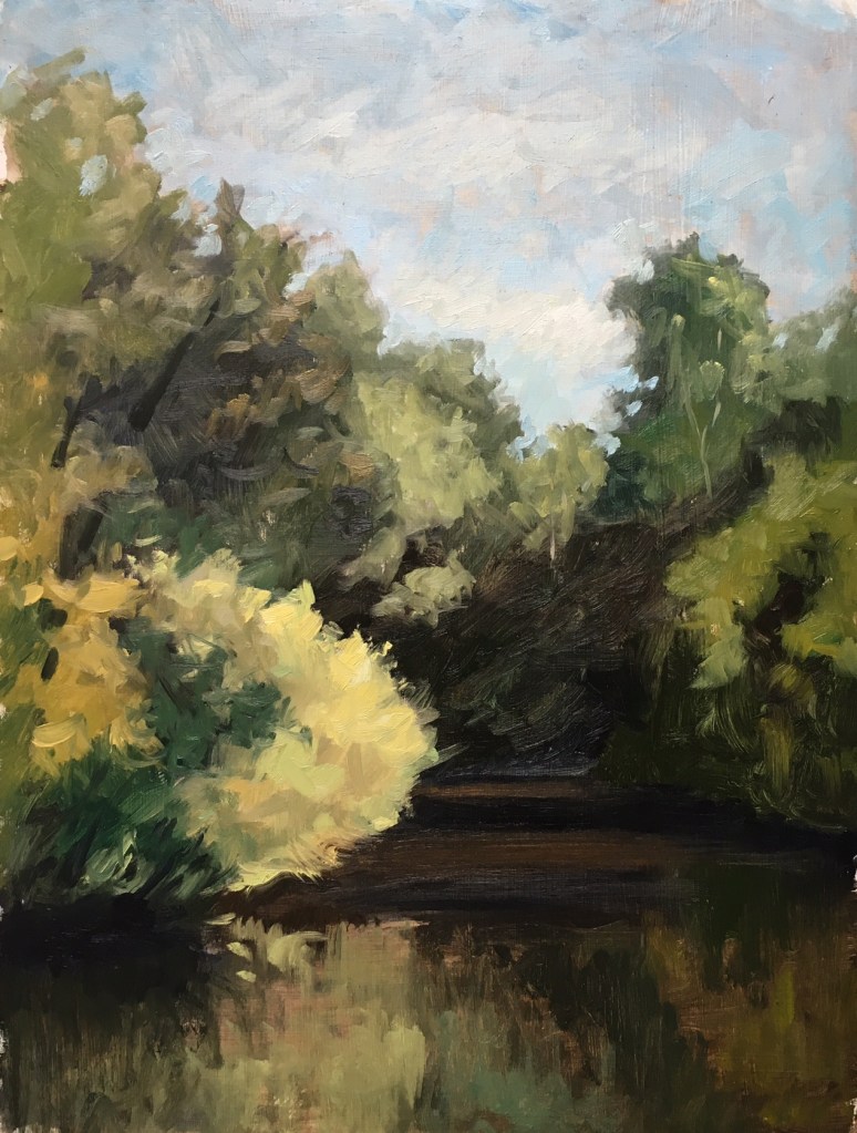 CharlesRiverReservationPainting Published 09/03/2017 at 1266 × 1674 in Summer Painting Charles River Reservation 2 : Oil on board. 9″x 12″ 2017