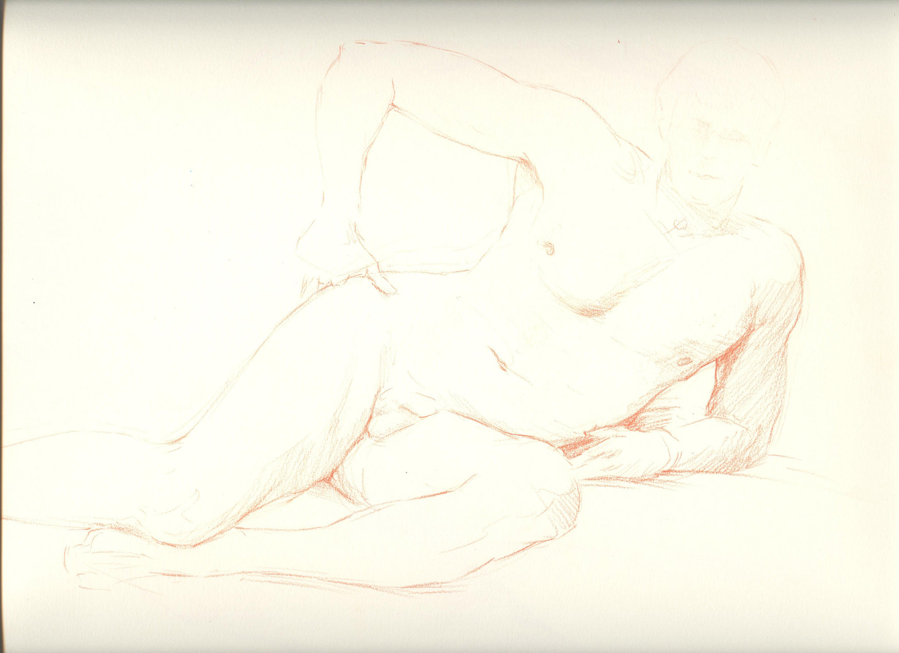 Jim Reclining Published 08/01/2011 at 1755 × 1275 in Figures Jim Reclining : Red chalk pastel on paper. 14″x16″ Like Loading...