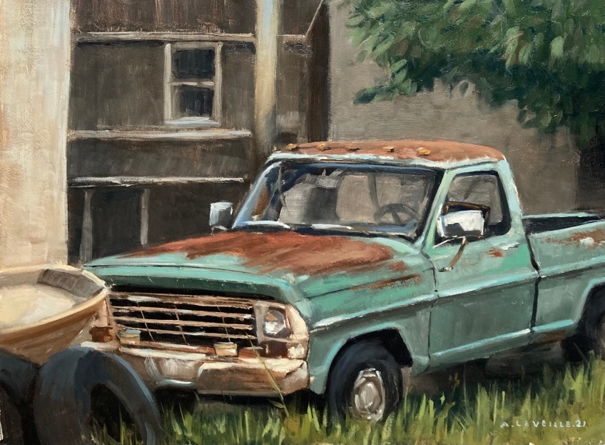 old-boat-teal-truck