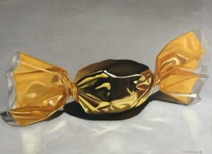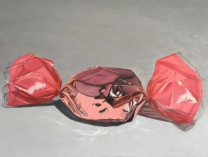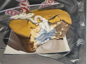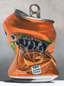 Bright, familiar objects are enlarged, stripped of context, and made unavoidable. The subject is elevated to a meditative icon, a fractured reflective remnant of empty consumption. What was formerly worthless is revalued through the artistic alchemy of the painted surface.